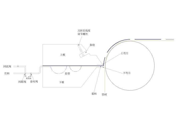 上圖情況解決方法:開大些回流閥減小回流壓讓漿料回流快些減小唇口漿料凸月面的曲率半徑,方可解決。