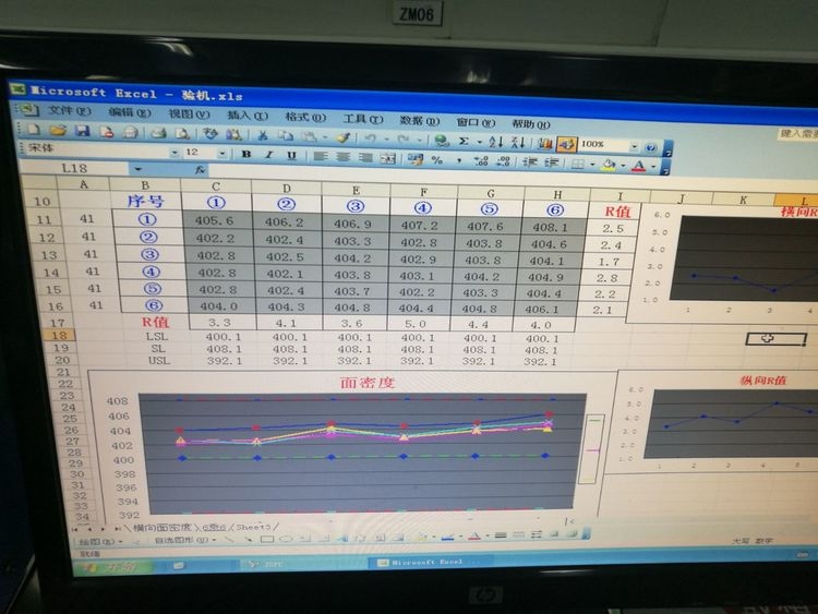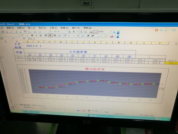更換上圖墊片厚度為1.0mm后各項工藝要求可控達標,若在停機過長時需要將模頭腔體的漿料噴出更換新料否則會出上圖面密度或不同程度規(guī)則的變化。